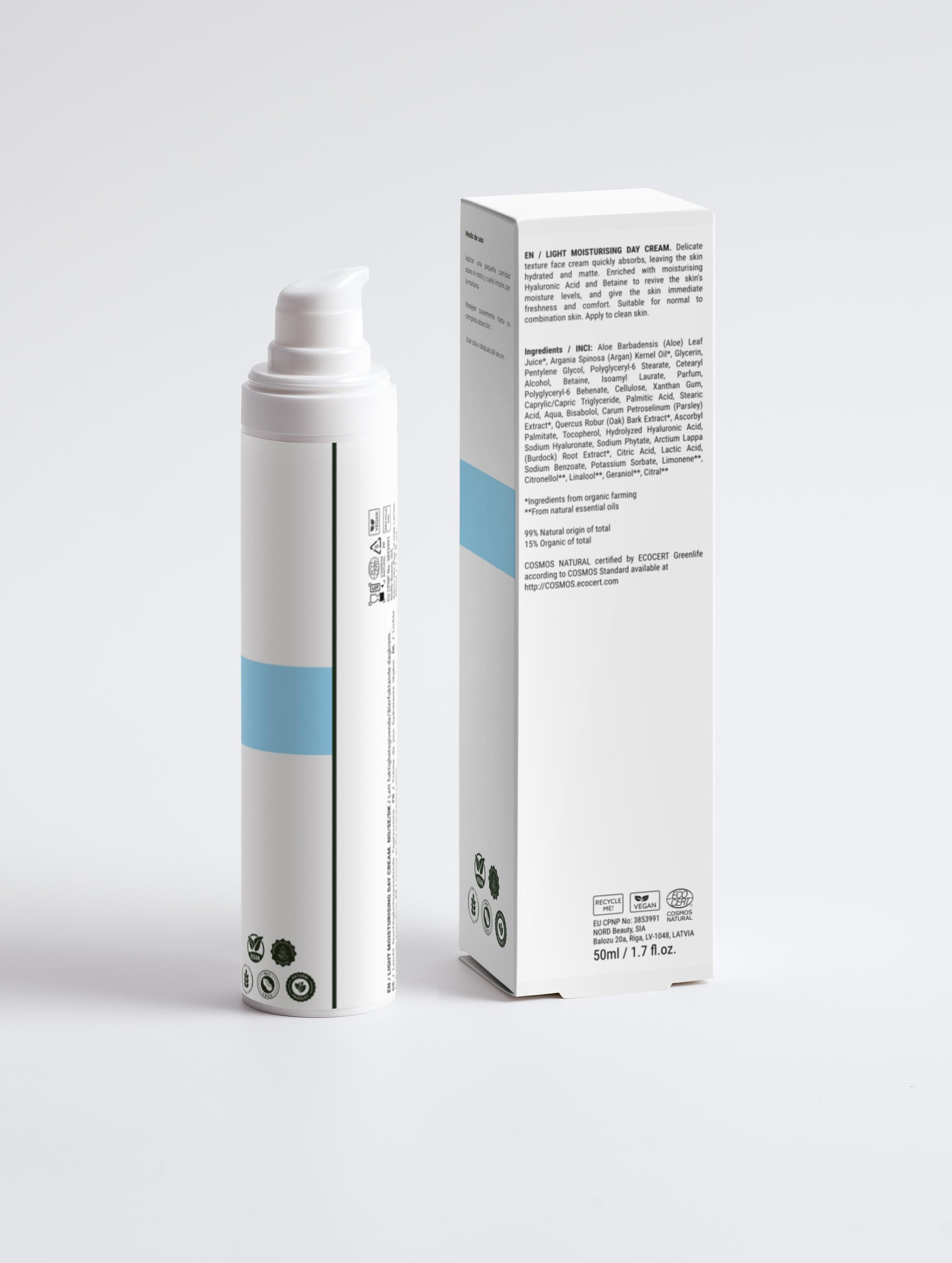 INCI: Aloe Barbadensis (Aloe) Leaf Juice➀, Argania Spinosa (Argan) Kernel Oil➀, Glycerin, Pentylene Glycol, Polyglyceryl-6 Stearate, Cetearyl Alcohol, Betaine, Isoamyl Laurate, Parfum, Polyglyceryl-6 Behenate, Cellulose, Xanthan Gum, Caprylic/Capric Triglyceride, Palmitic Acid, Stearic Acid, Aqua, Bisabolol, Carum Petroselinum (Parsley) Extract➀, Quercus Robur (Oak) Bark Extract➀, Ascorbyl Palmitate, Tocopherol, Hydrolyzed Hyaluronic Acid, Sodium Hyaluronate, Sodium Phytate, Arctium Lappa (Burdock) Root Extract➀, Citric Acid, Lactic Acid, Sodium Benzoate, Potassium Sorbate, Limonene➁, Citronellol➁, Linalool➁, Geraniol➁, Citral➁