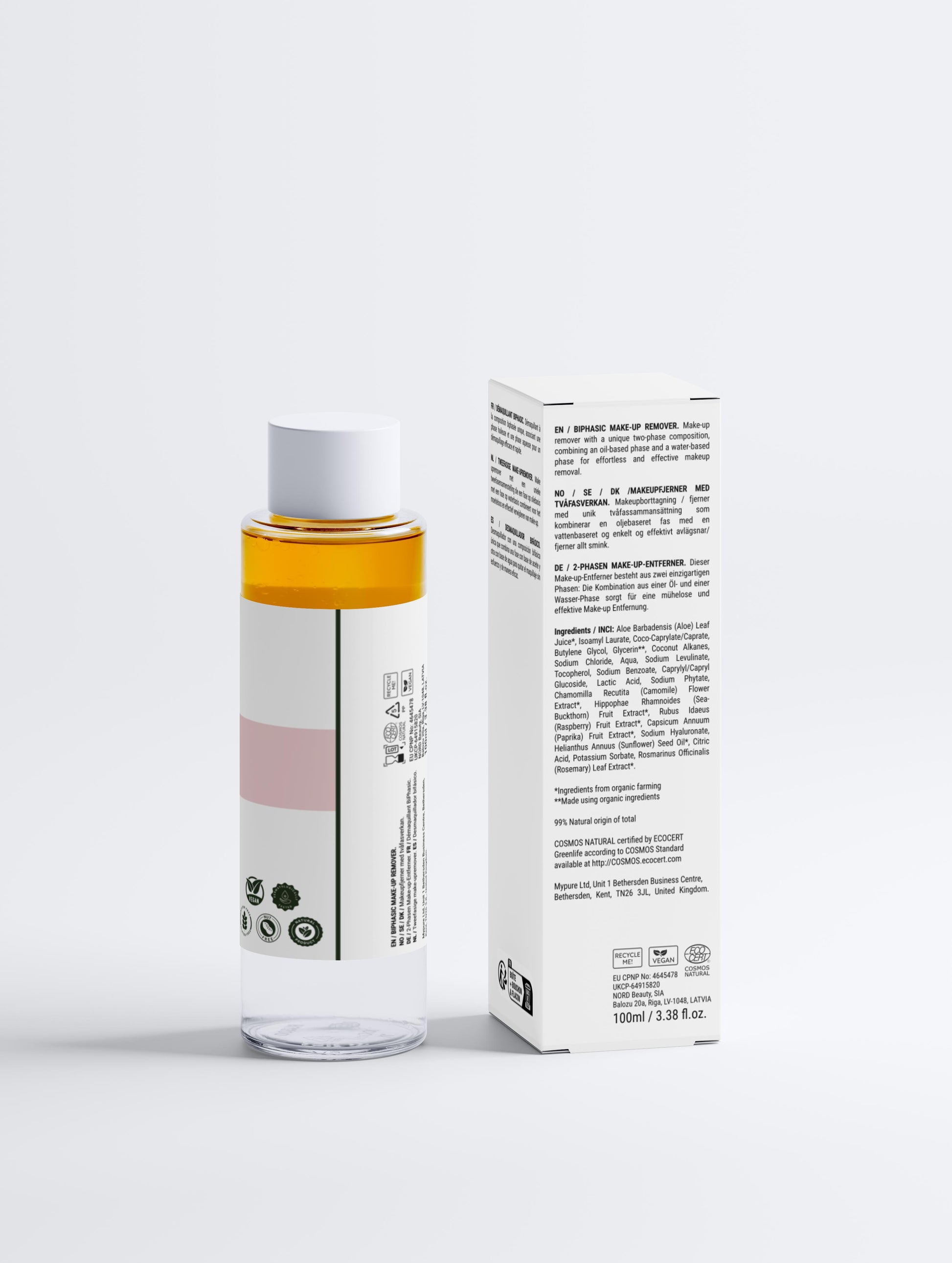 Fórmula bifásica que combina fase oleosa y acuosa, diseñada para disolver suavemente impurezas, maquillaje y protector solar. Al agitarse, se mezcla fácilmente y se aplica con algodón, dejando la piel limpia, calmada y lista para el siguiente paso de la rutina.